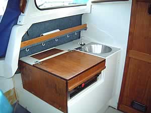 The pre - SE Hardy Pilots have the advantage of the third (quarter) berth in the cabin provided by the galley moulding in the wheelhouse. The cooker is slightly larger and has a grill. The downside though, is the lack of a passenger seat, which the SE does provide.
